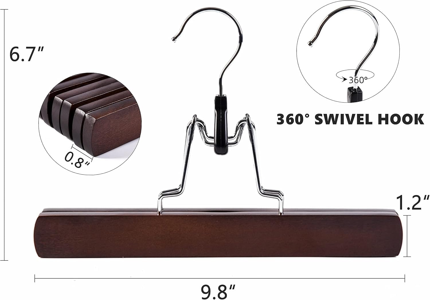 HOUSE DAY 10 Pack Walnut Clamp Wooden Pants Hangers Non Slip Wood Skirt Hangers Wood Jeans/Slack Hanger with 360° Swivel Hook – Pants Hangers for Skirts, Slacks.