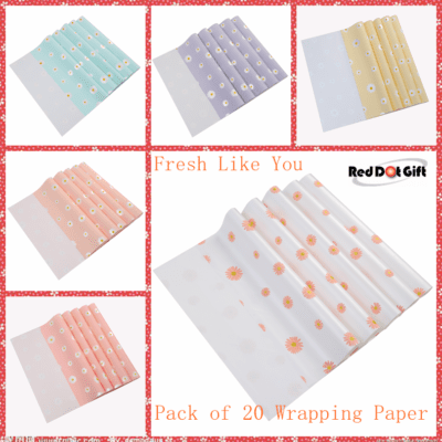 Red Dot Gift® Pack of 20 Sheets Gift Wrapping Paper ( Model Type : Fresh Like You ) Size 57x57cm,Waterproof Flower Bouquet Wrapping Paper Used for DIY Crafts,Floral Wrapping Paper,Wrapping Paper for Flower Bouquet