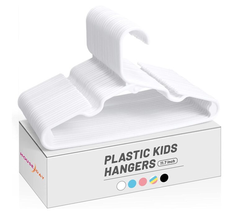 - PREMIUM QUALITY: House Day kids hangers are made of high-quality plastic and can hold up to 8 lbs. of weight. These baby hangers for closet are great for any type of shirt, trousers, jeans, shorts, shirts, sweaters, coats, dresses, skirts and can hang pants and shirts me together.