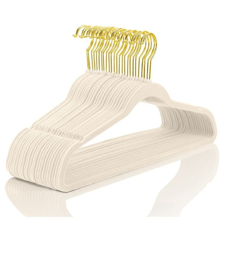 MIZGI Premium Velvet Hangers Pack 50 Pcs Heavyduty – Non Slip Slimline – Velvet Suit Hangers Ivory – Gold Hooks ,Space Saving Clothes Hangers (Ivory)